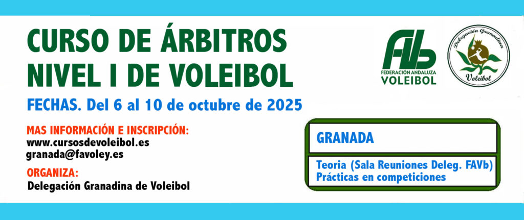 - CURSO ARBITRO NIVEL I VOLEIBOL. ALMERIA (del 15 al 22/09/2025). Convocatoria. Cartel.